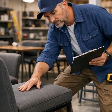 Our inspection services help businesses keep their furniture looking great, performing safely, and lasting longer. We perform detailed, on-site evaluations, checking structural integrity, upholstery wear, foam breakdown, and overall stability, while documenting issues, identifying safety concerns, and providing practical recommendations for repair, cleaning, refinishing, or replacement.